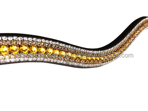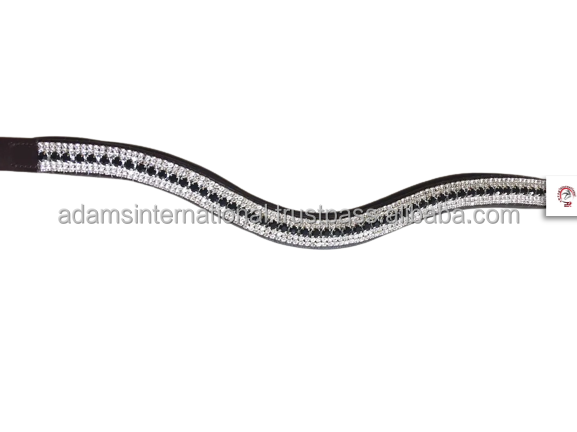 Superbe qualité Logo personnalisé Mega Bling 5 rangs Crystal Brow Band Matériel en cuir d'équitation équestre haut de gamme