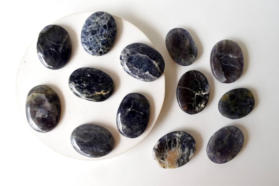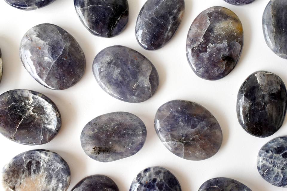 Superb Quality European Feature Blue Color Oval Agate Gemstone Iolite Worry Stones for Decorations Gifts