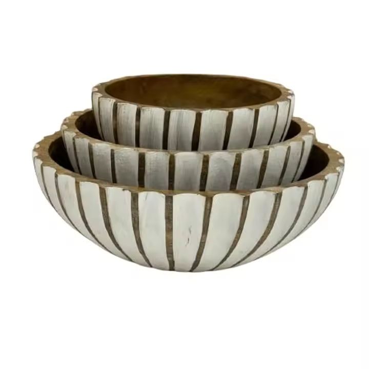Bol à salade rustique de qualité superbe sculpture de feuille avec lavage gris vente en gros chaude bol d'ustensiles de cuisine naturel pour la cuisine à domicile