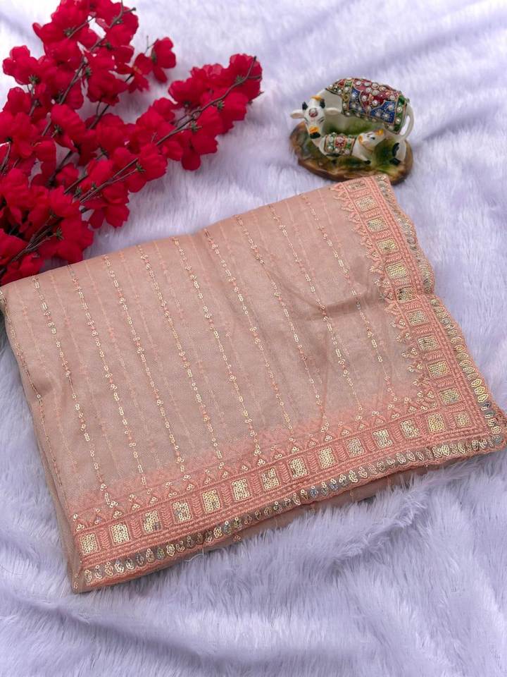 Superbe tissu en soie douce, couleur vive, travail de séquence, longueur de 5,5 mètres, sari drapé en une minute avec le même morceau de blouse pour la fête
