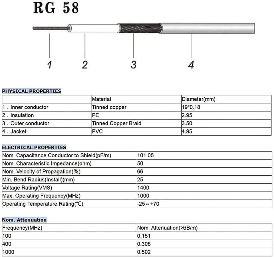 Type de câble:Câble coaxial RG58