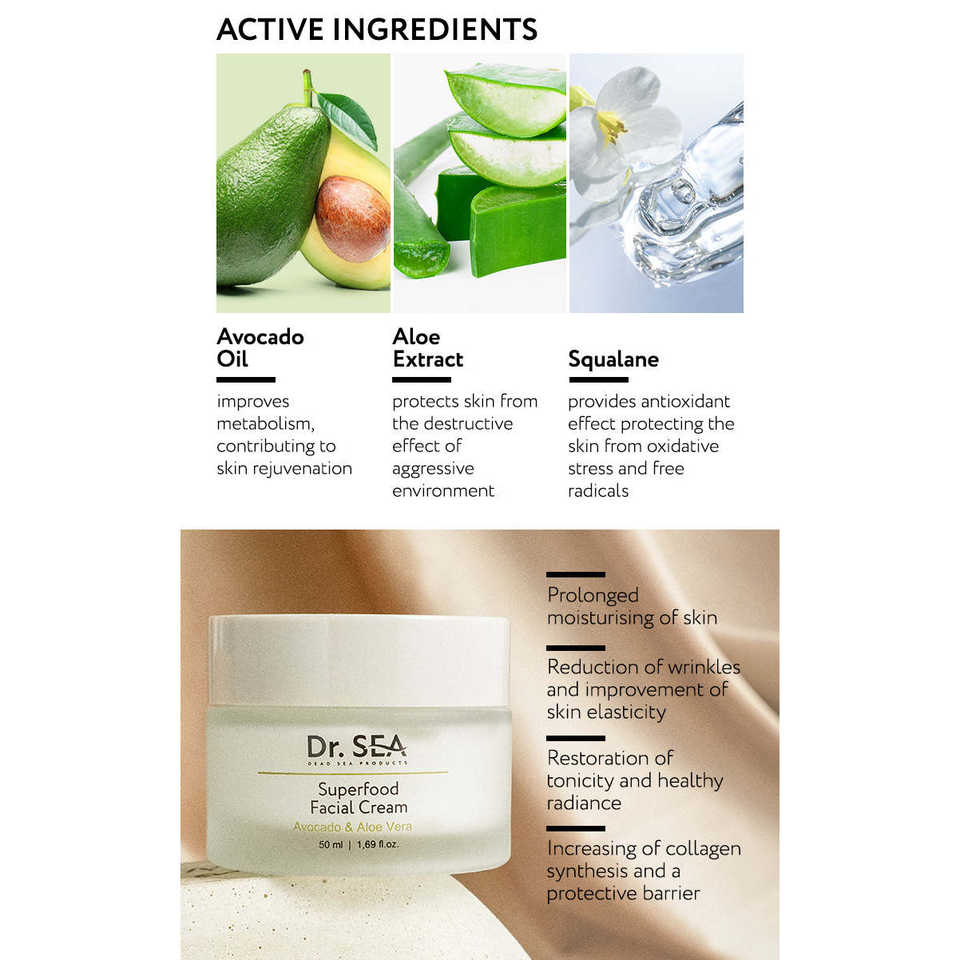 Superfood Facial Cream-50 ml Infused with Avocado & Aloe Vera Nourishing & Soothing Ingredients