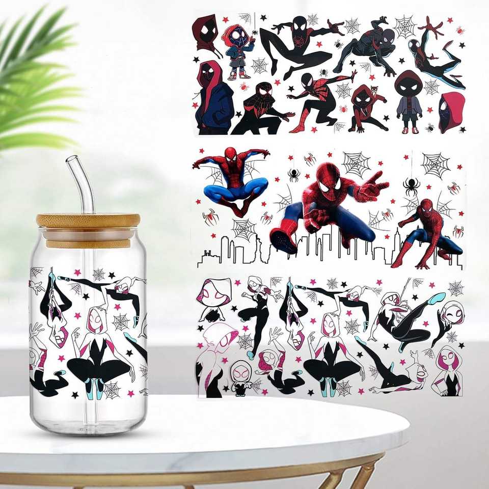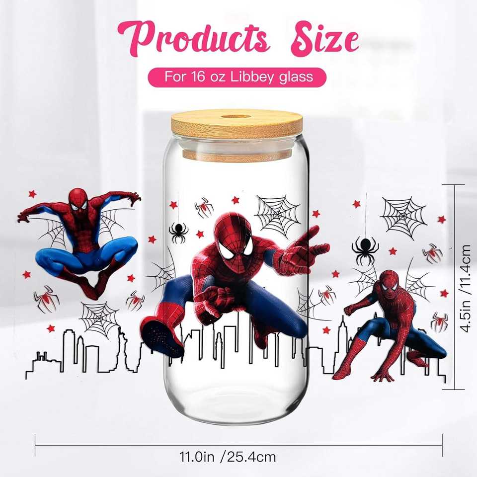 Superhero Spiderman 16oz UV DTF Cup Wrap Cute Transfers Sticker Decals for Glass Cup Custom Size Washable and Durable Cup Wraps