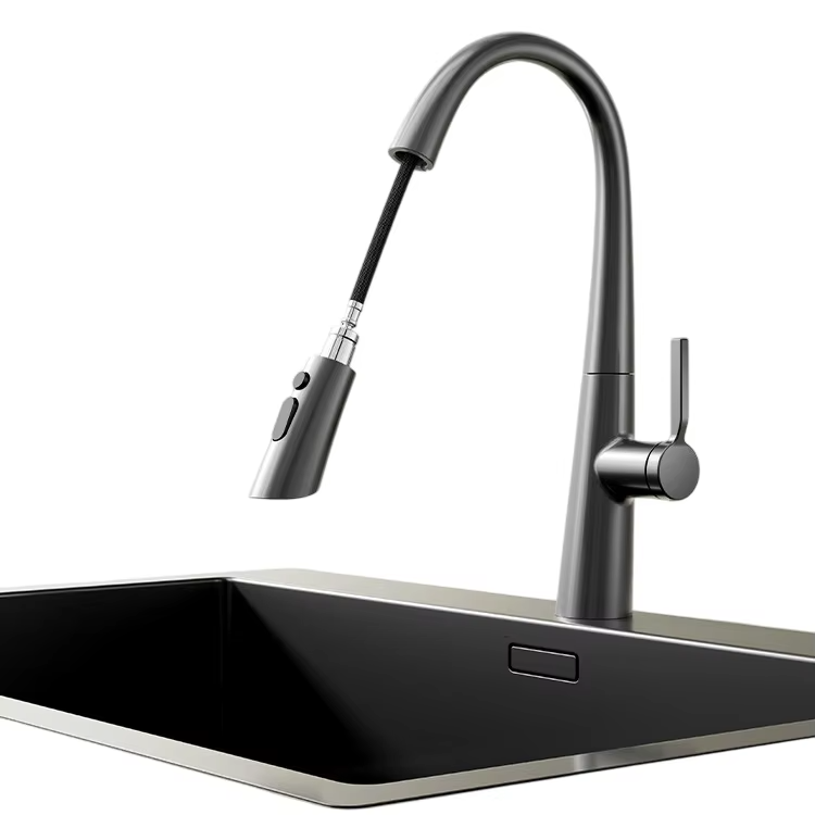 Robinet de cuisine Superhome à poignée unique en laiton massif avec douchette extractible et design rétractable