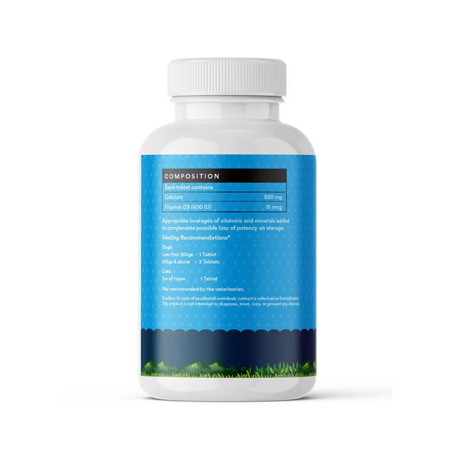 Superior 60-Tab Pet Health Care Supplement Calcium & Vitamin D3 for Dogs and Cats Supports Bone Teeth Joints