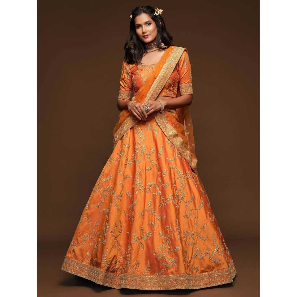 Fil orange supérieur broderie Art soie mariage Lehenga Choli