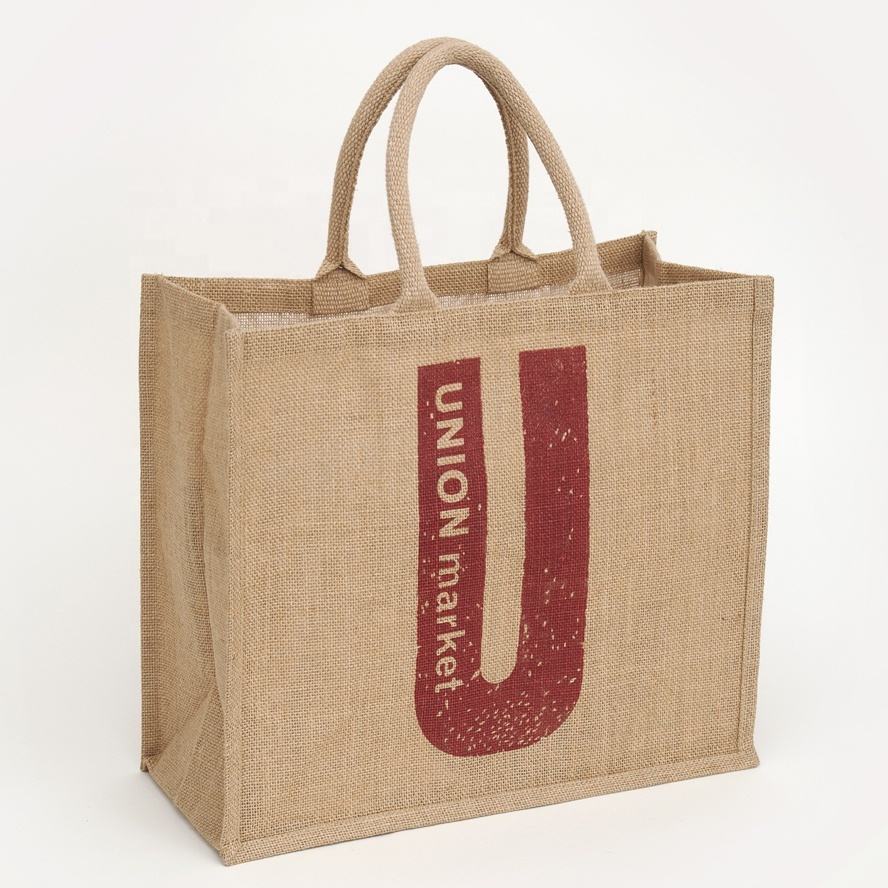 Sac fourre-tout d'épicerie recyclable écologique personnalisé Qualité supérieure Durable Logo imprimé Toile de jute Jute Réutilisable avec motif de lettres
