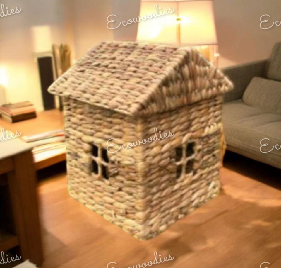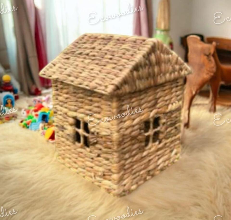 Panier de rangement en forme de maison en rotin naturel de qualité supérieure organisateur de jouets pour enfants décor de chambre d'enfant