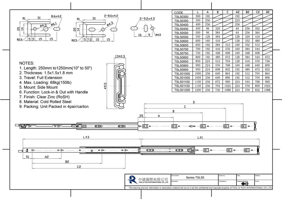 Caractéristique:Installation facile, Heavy Duty, Extension complète, 3 fois, Silencieux, Avec la serrure