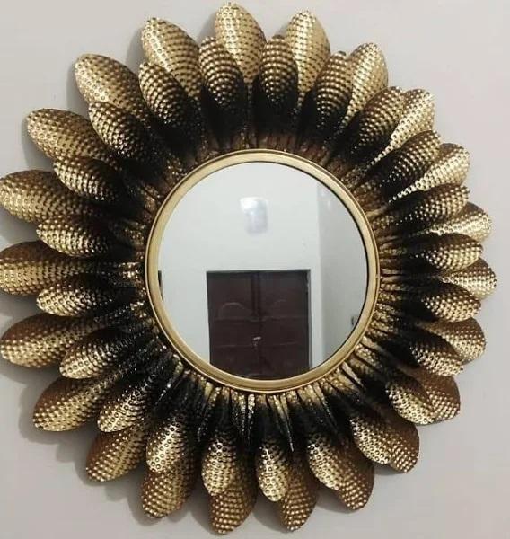 Miroir mural de qualité supérieure Miroir de luxe gris enduit de poudre fait à la main Miroir mural en métal de taille personnalisée de forme ronde