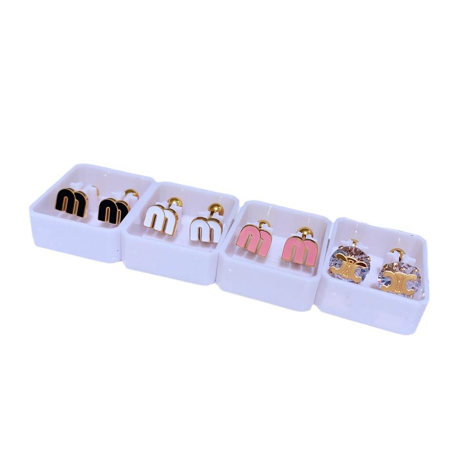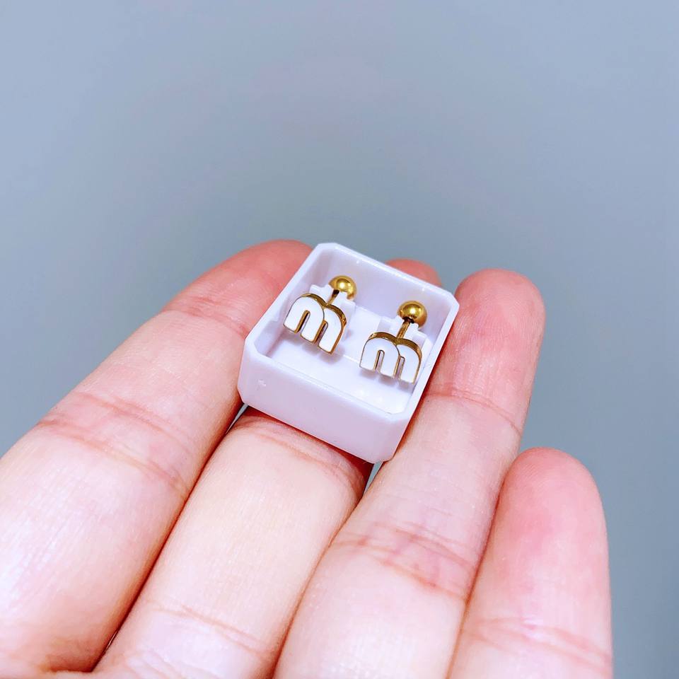 Sens supérieur simple tempérament lettre M Titane acier oreille os vis vis zircon Arc de Triomphe boucles d'oreilles bain gratuit