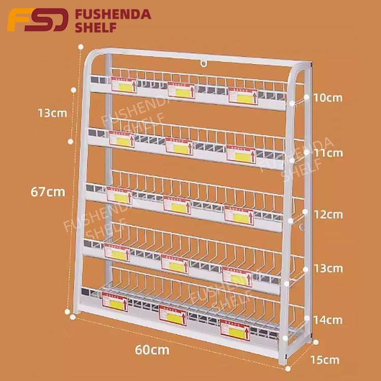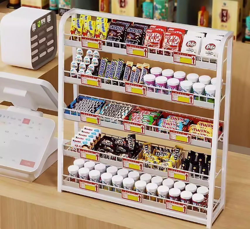 Présentoir de supermarché Étagère simple double face robuste Étagère en métal acrylique pour caisse enregistreuse avec matériau en bois