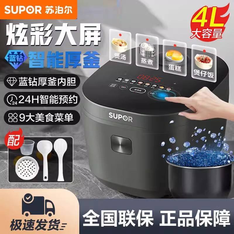 Autocuiseur intelligent Supor 4L noir avec contrôle par micro-ordinateur, cuve intérieure Blue Diamond, multifonctionnel électrique avec fonction vapeur pour gâteaux