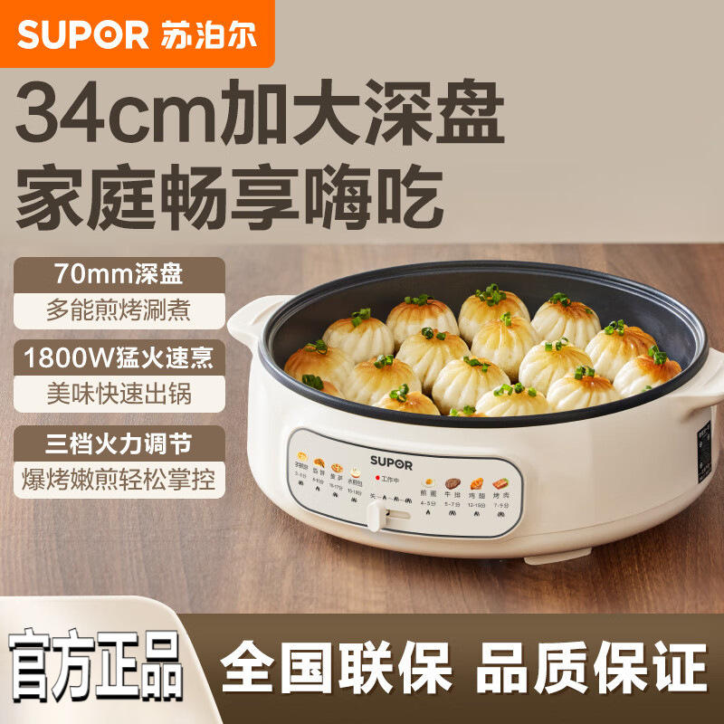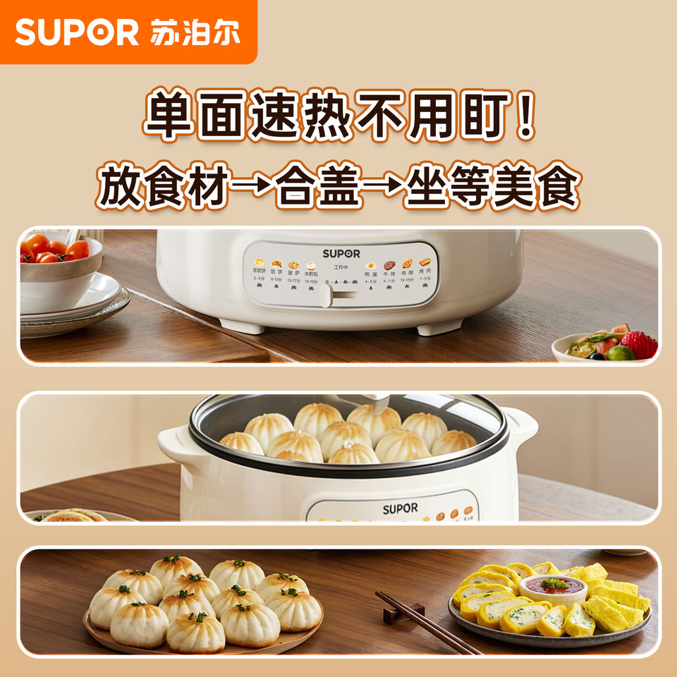 Plaque chauffante électrique Supor 34 cm, antiadhésive, chauffage unilatéral, multifonctionnelle, pour petit-déjeuner, avec fonction de réservation