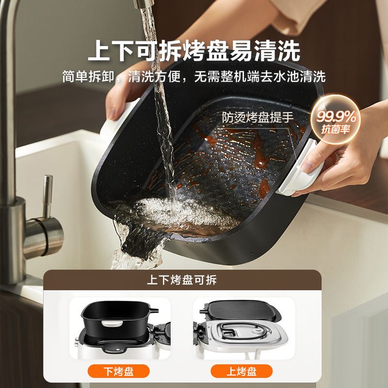 Plaque de cuisson électrique Supor, chauffage double face, amovible, lavable, antiadhésive, PTFE, 28 cm, machine de cuisson multifonction