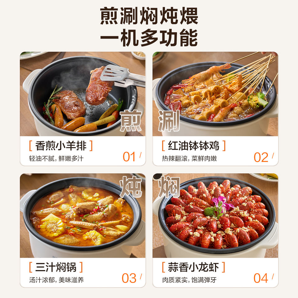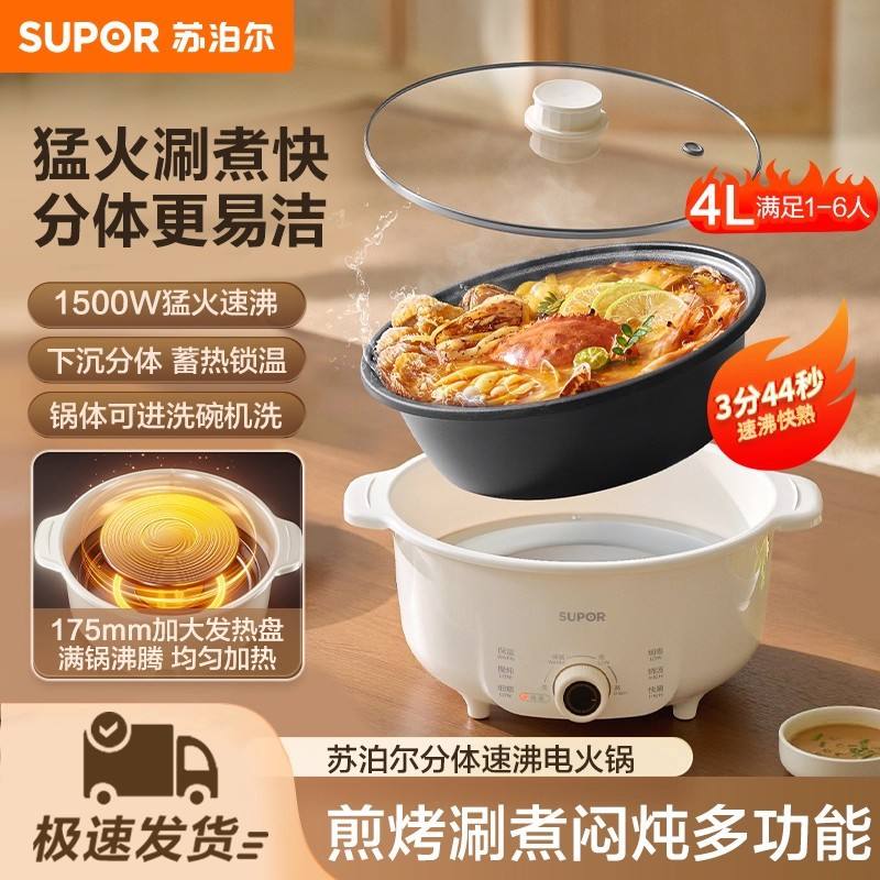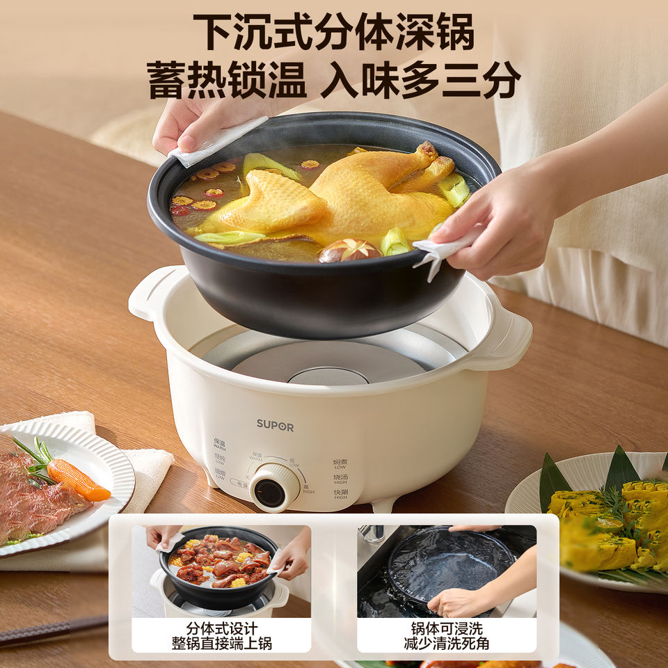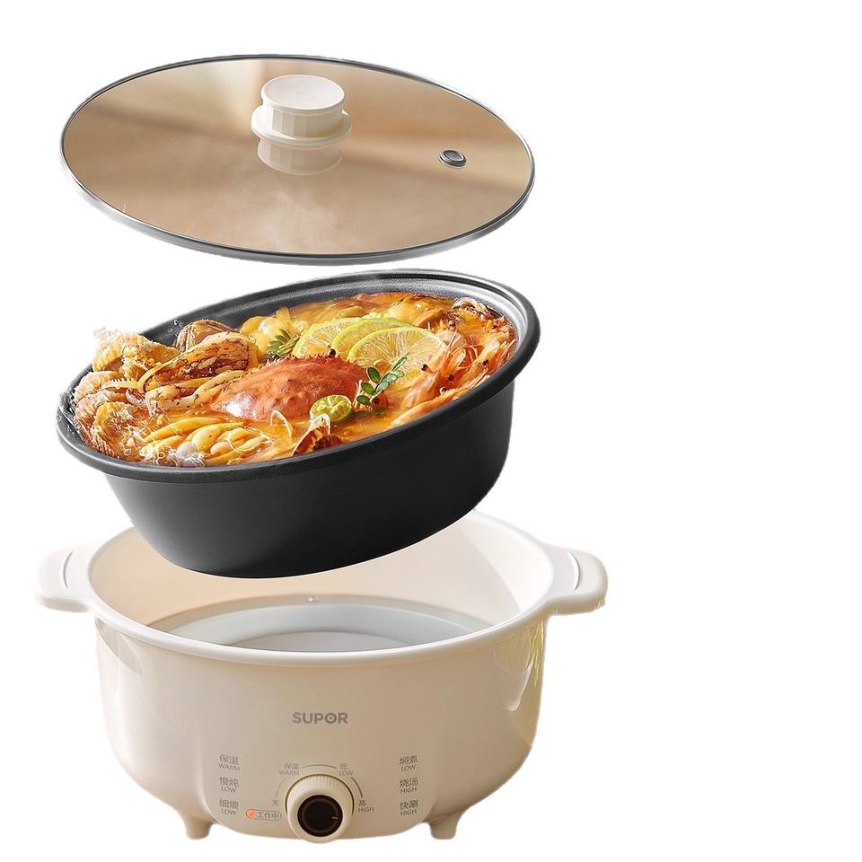Supor – marmite électrique 4L, couleur crème, type split, cuiseur multifonctionnel avec pot amovible pour usage domestique