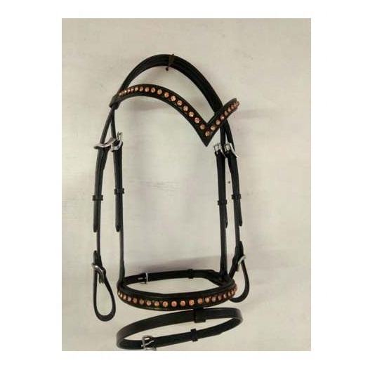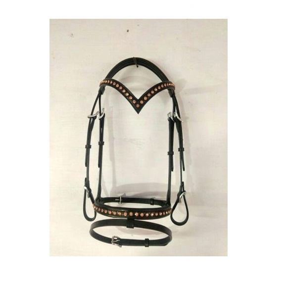Bride anatomique de qualité supérieure pour chevaux Confortable en cuir véritable Rose Gold Crystal Design Rembourré Nose-Band Équestre