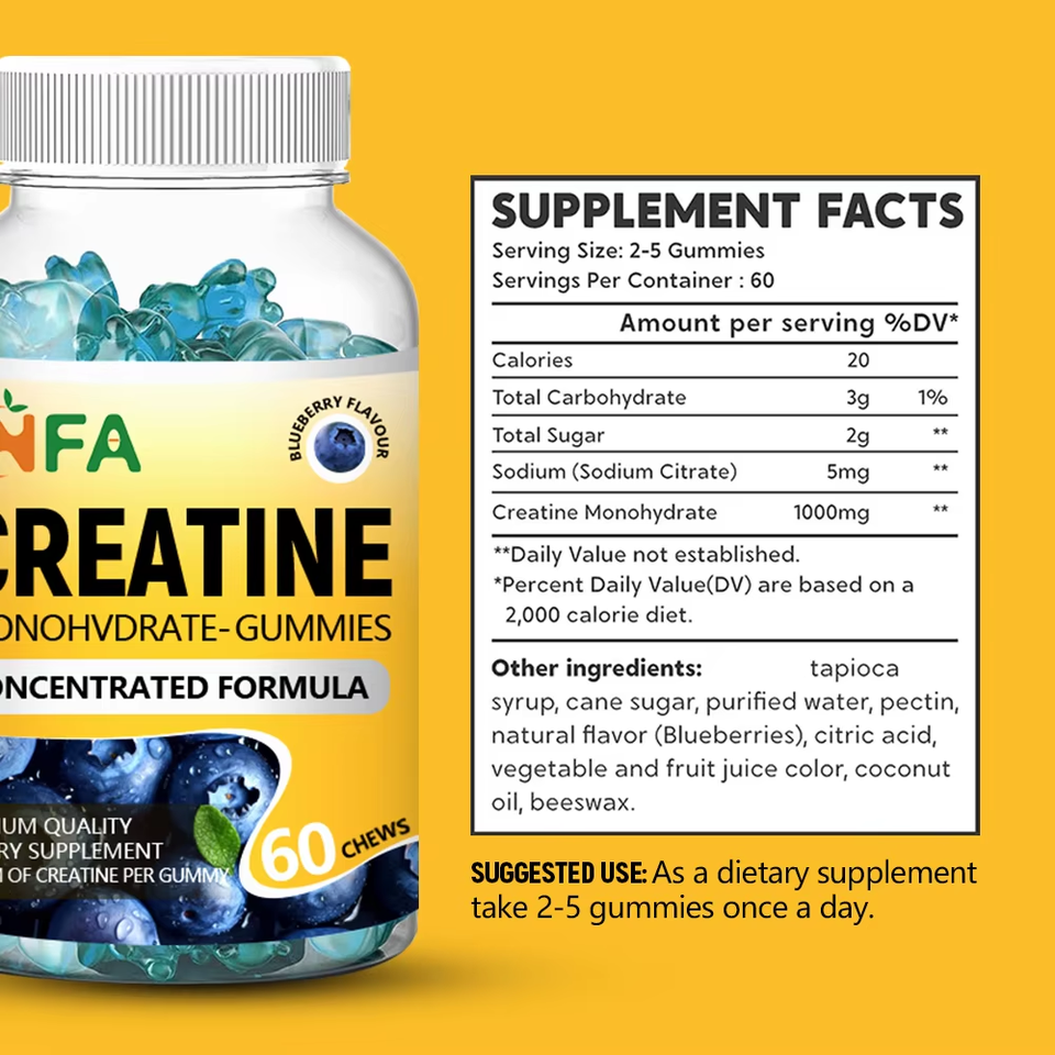 Supplément Fabricant Créatine Gummies Formule Concentrée Améliore la Récupération Musculaire 60 Pectine Gummies à Croquer