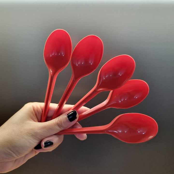 Cuillères en plastique jetables à long manche d'excellente qualité pour restaurant de fête cuillère à soupe rouge de service rapide