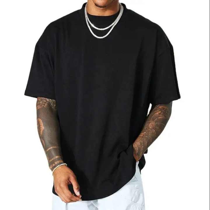 T-shirt pour homme à col montant, grande taille, 100% coton, poids lourd, luxe, épaules tombantes, t-shirt vierge pour homme, qualité supérieure, personnalisable par le fournisseur
