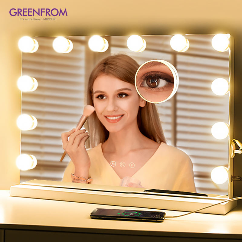 Table de Maquillage Coiffeuse Miroir LED Métal Design Moderne Fournisseur avec 12 Ampoules GMM5040