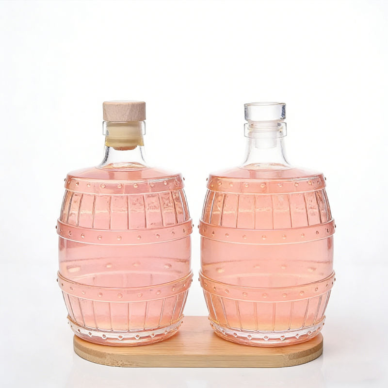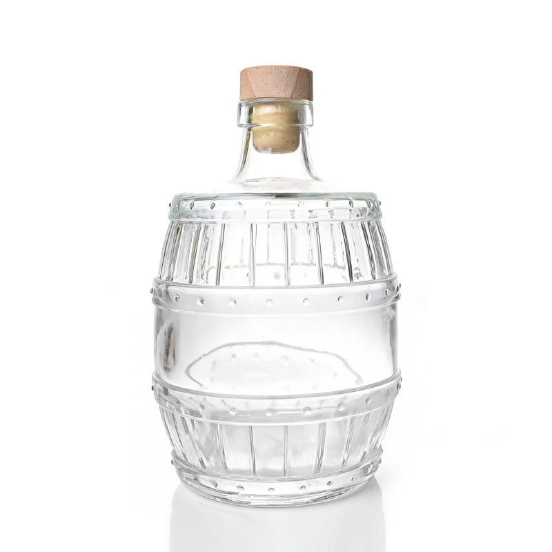Fournisseur avec expérience de l'exportation, nouvelle conception de bouteilles en verre en forme de baril pour vin, liqueur, bière, vodka, whisky, vides, 500 ml avec bouchon