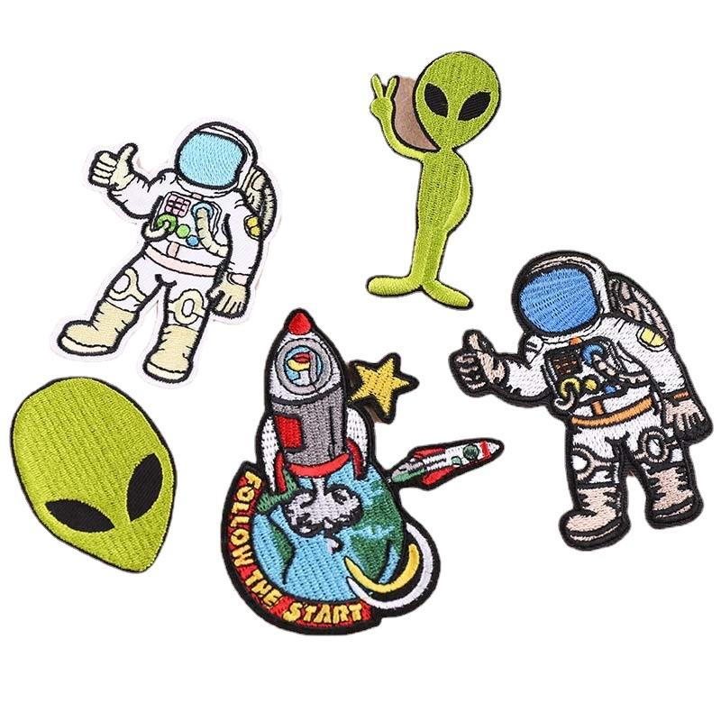 Fourniture de patchs de broderie personnalisés en fer sur ordinateur broderie astronaute et patchs en tissu extraterrestre pour chaussures et vêtements