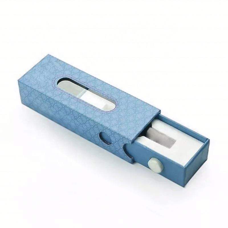 Boîte coulissante rigide avec fenêtre, résistante aux enfants, personnalisable avec logo en relief, en matériaux recyclés