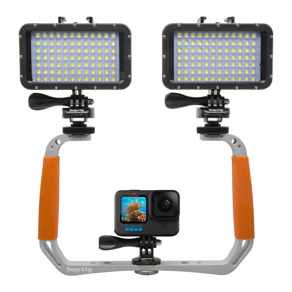 Suptig Plate-forme de plongée sous-marine en alliage d'aluminium, support de stabilisation portable en silicone à double poignée pour appareils photo DJI et Insta360