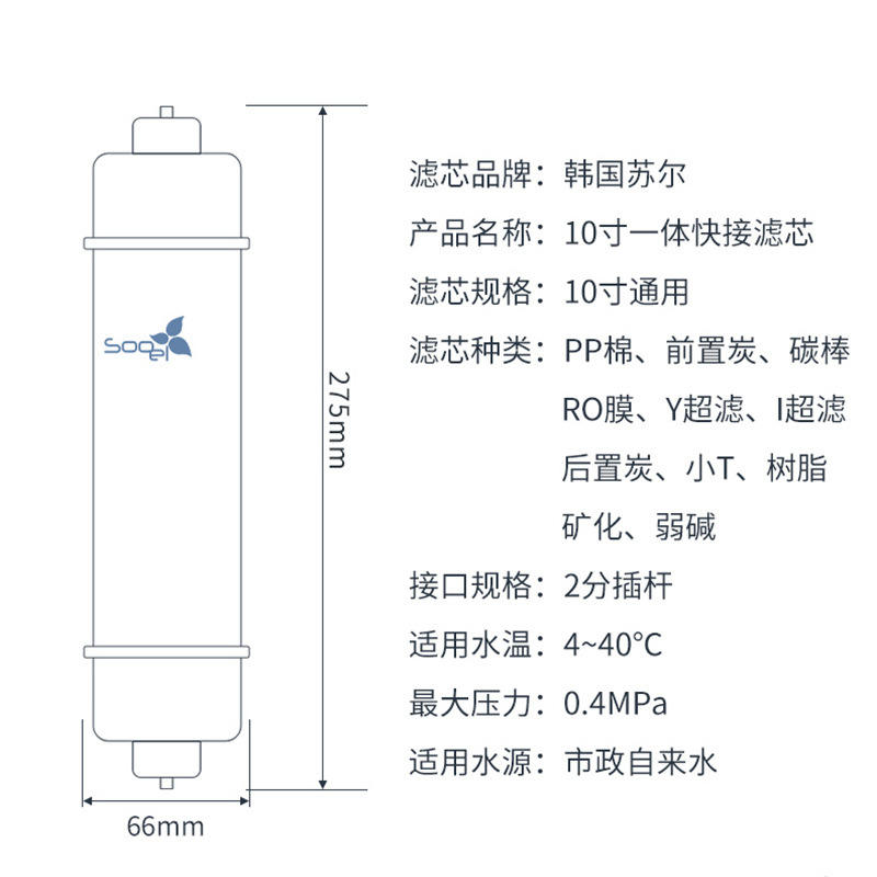 Cartouche filtrante à connexion rapide de style américain de 10 pouces, coton PP, pré-filtre au charbon, post-filtre au charbon, T33, remplacement pour purificateur d'eau