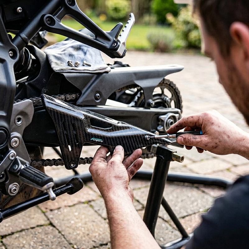 Protection de chaîne en fibre de carbone pour moto Sur-Ron Light Bee - Garde-boue de chaîne modifié et durable