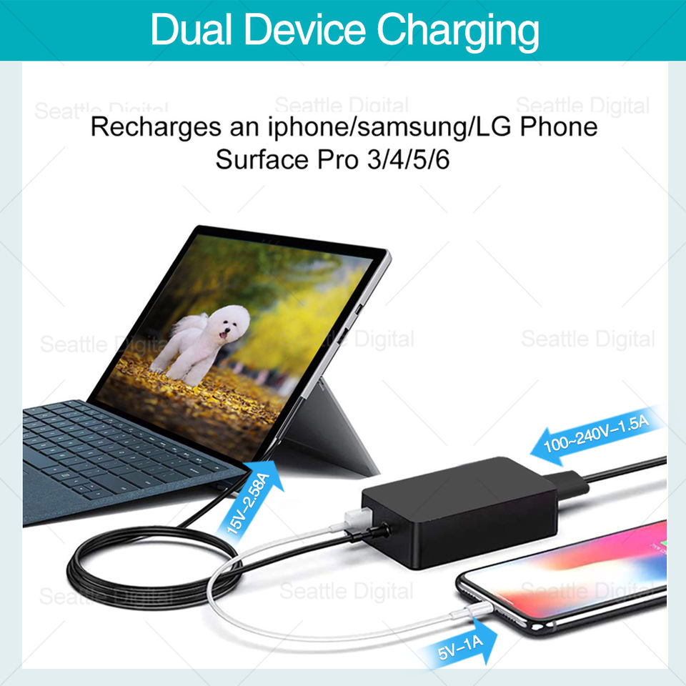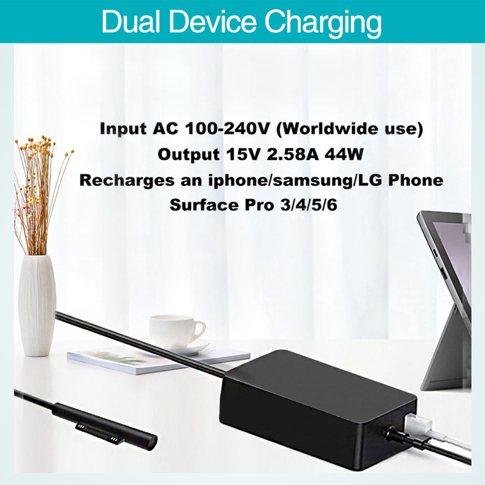 Surface Charger Adaptateur d'alimentation 44W pour Microsoft Surface Pro 3,4,5,6, Surface Laptop,Book,Go,Laptop Go