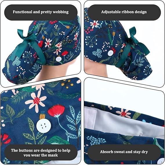 Capuchon chirurgical réglable en coton polyester pour queue de cheval avec bouton coloré pour hôpital