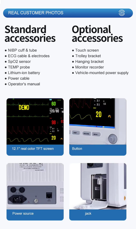 Équipement d'urgence chirurgical, moniteurs multiparamètres portables pour animaux, alimentation électrique 300W 110V/220V 50-60Hz Classe II