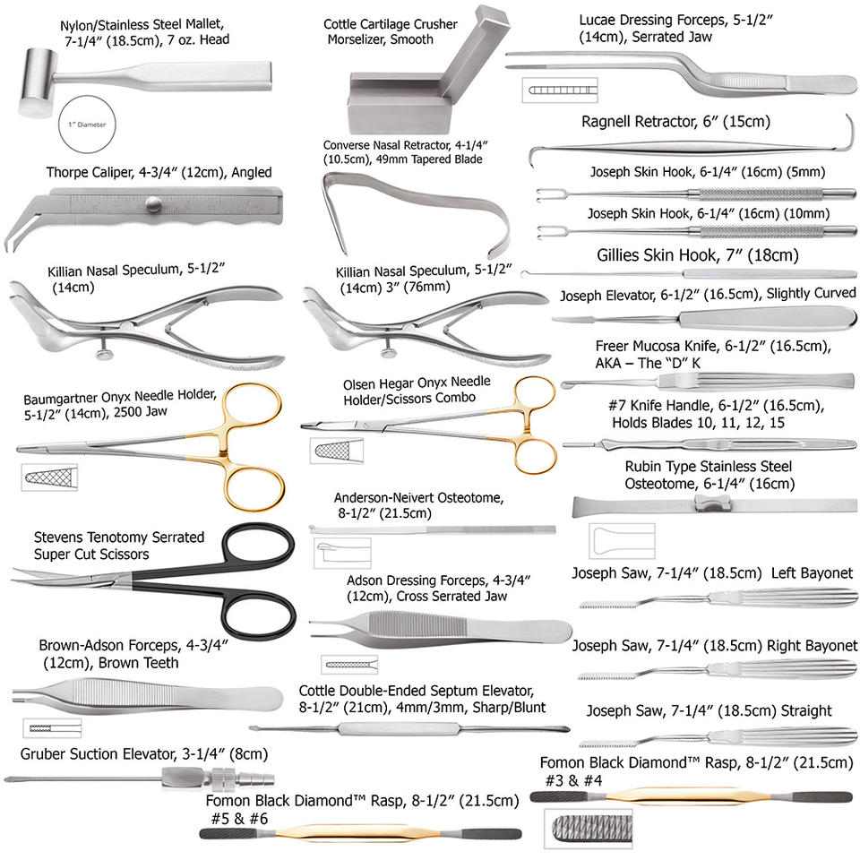 Ensemble de rhinoplastie Kaye Gruber de qualité chirurgicale en acier inoxydable 28 pièces ensemble de procédure de rhinoplastie Instruments de chirurgie du nez
