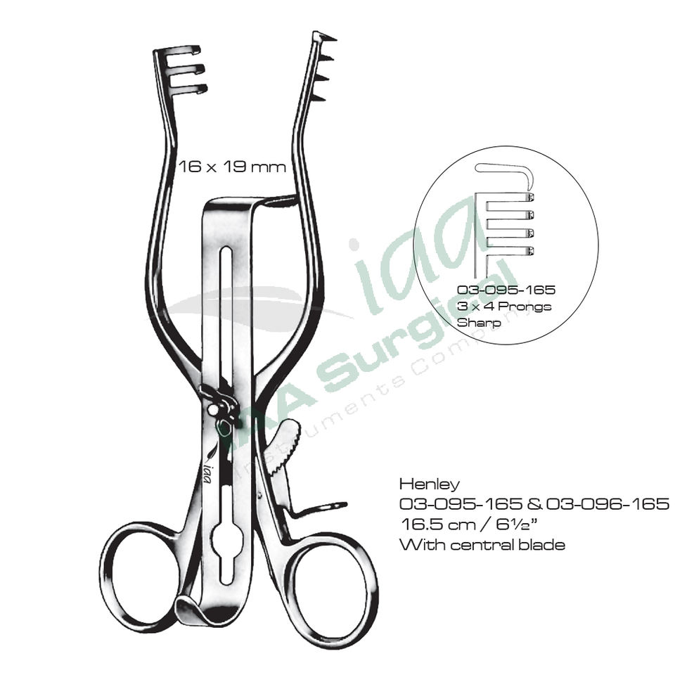 Retracteur Henley manuel chirurgical complet en acier inoxydable allemand auto-serrant avec lames centrales