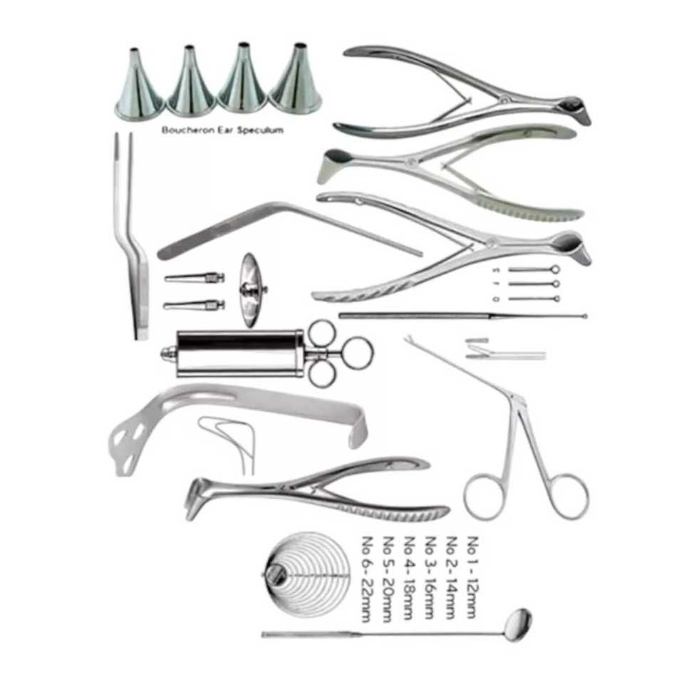 Ensemble complet d'instruments chirurgicaux ORL en acier, portables et écologiques, pour les procédures sur l'oreille, le nez et la gorge dans les hôpitaux et les cliniques