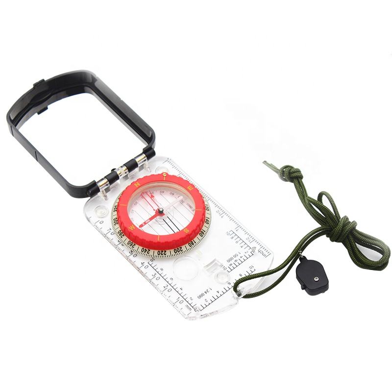 Boussole de survie avec miroir de visée avec décélération magnétique réglable et lumière Led SOS