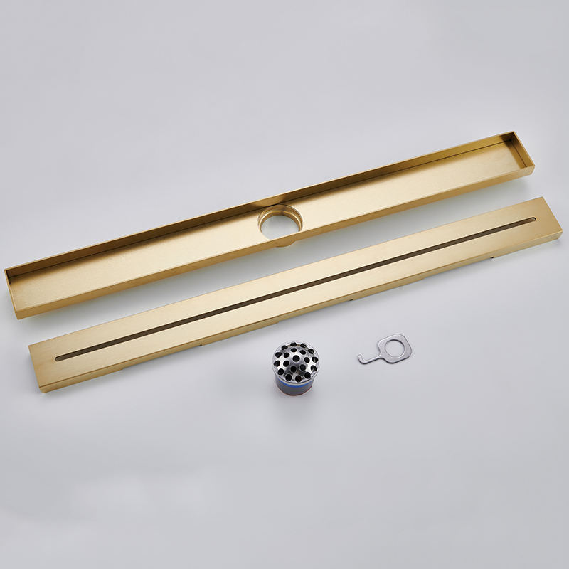 Sus 304 Gold Long Stainless Steel Linear Floor Drain Rectangle Anti-Odor Bathroom Home Brushed Copper Hotels