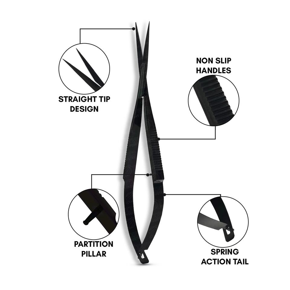 Ciseaux à ressort micro noirs durables avec ciseaux de manucure à pointe pointue Marque privée Ciseaux à sourcils de haute qualité