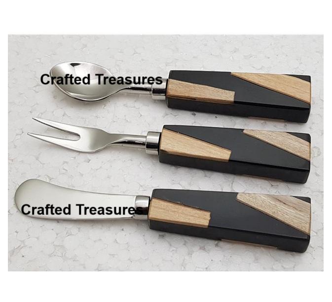 Ensemble de fromage durable avec manche en bois et en résine de forme rectangulaire pour ustensiles de cuisine Table à manger fromage beurre épandeur ensembles de couteaux