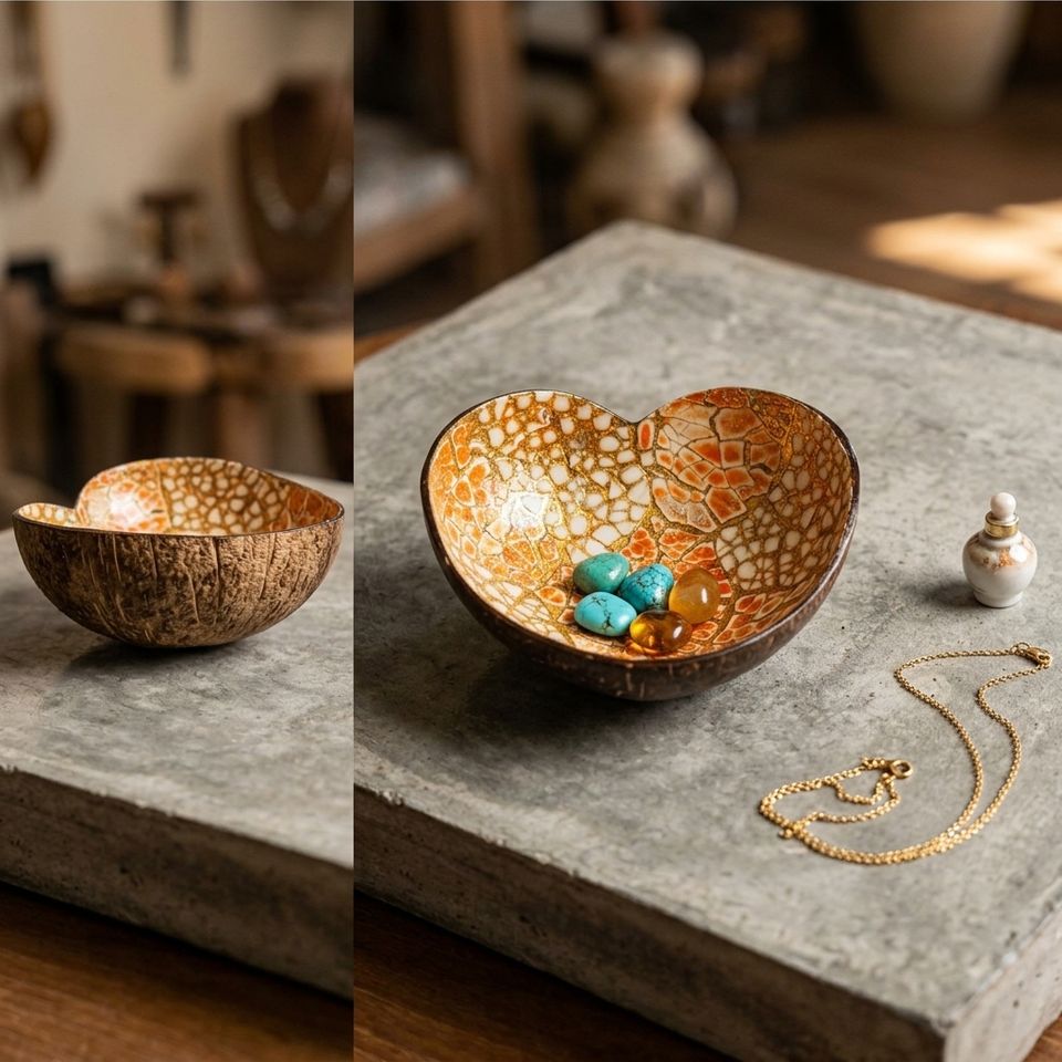 Bol en Coque de Noix de Coco Durable Fait Main, Mosaïque Laquée, pour Décoration d'Intérieur, Bonbonnière, Organisateur de Bijoux