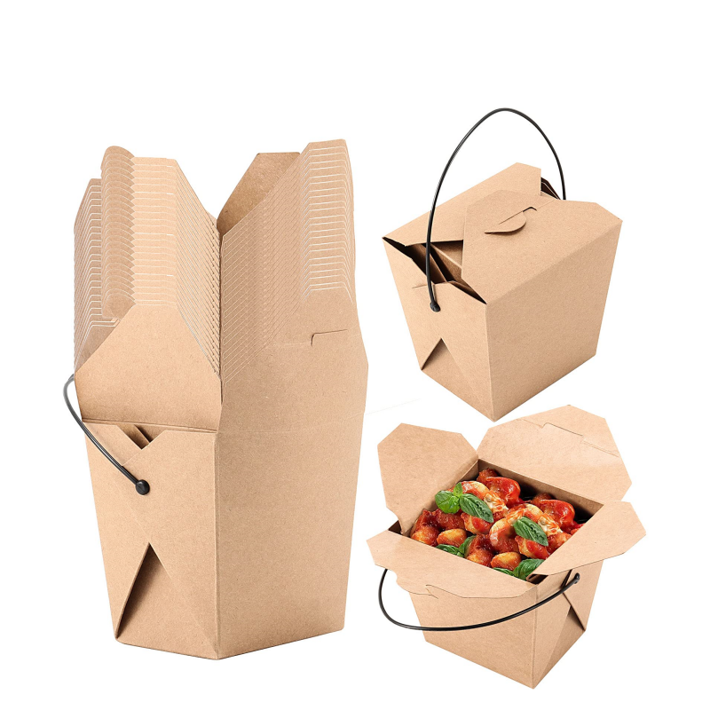 Boîte à nouilles en papier kraft jetable durable avec couvercles, récipient à emporter anti-fuite, emballage pour services de restauration