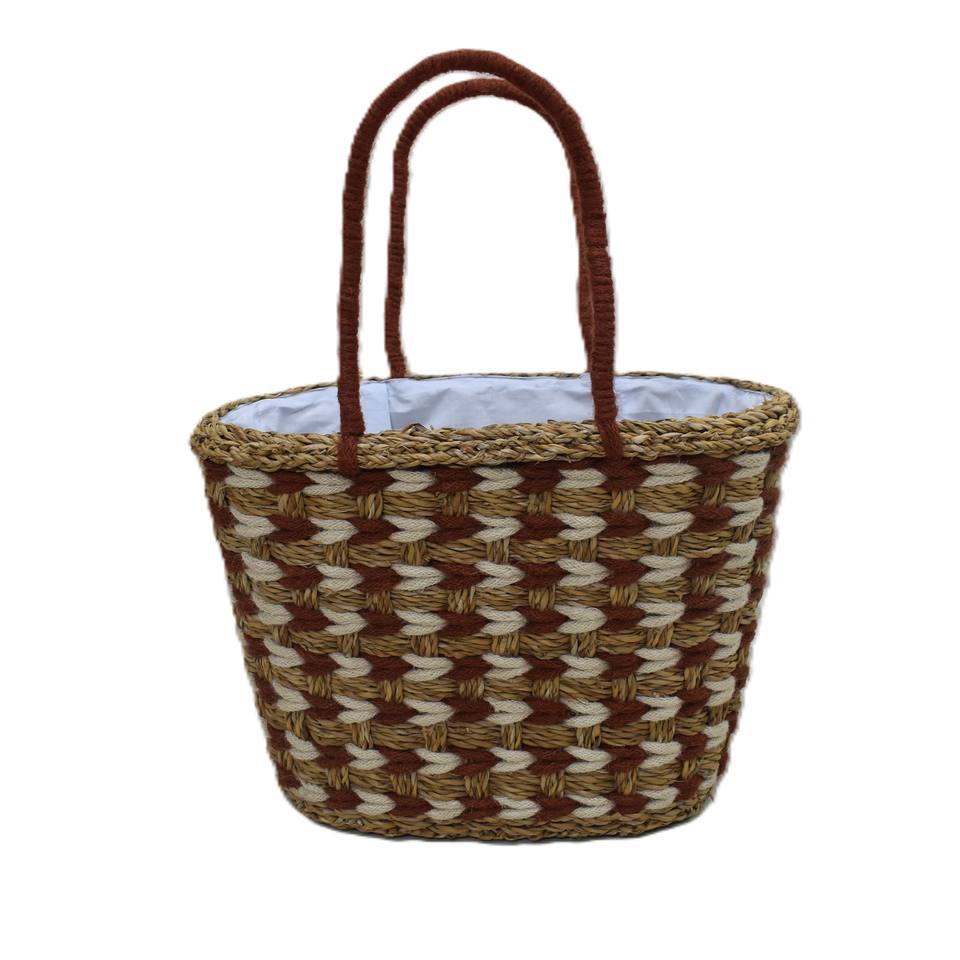 Sustainable Diversified Round Beach bag with red, black, natural color stripe direct export from Bangladesh Factory