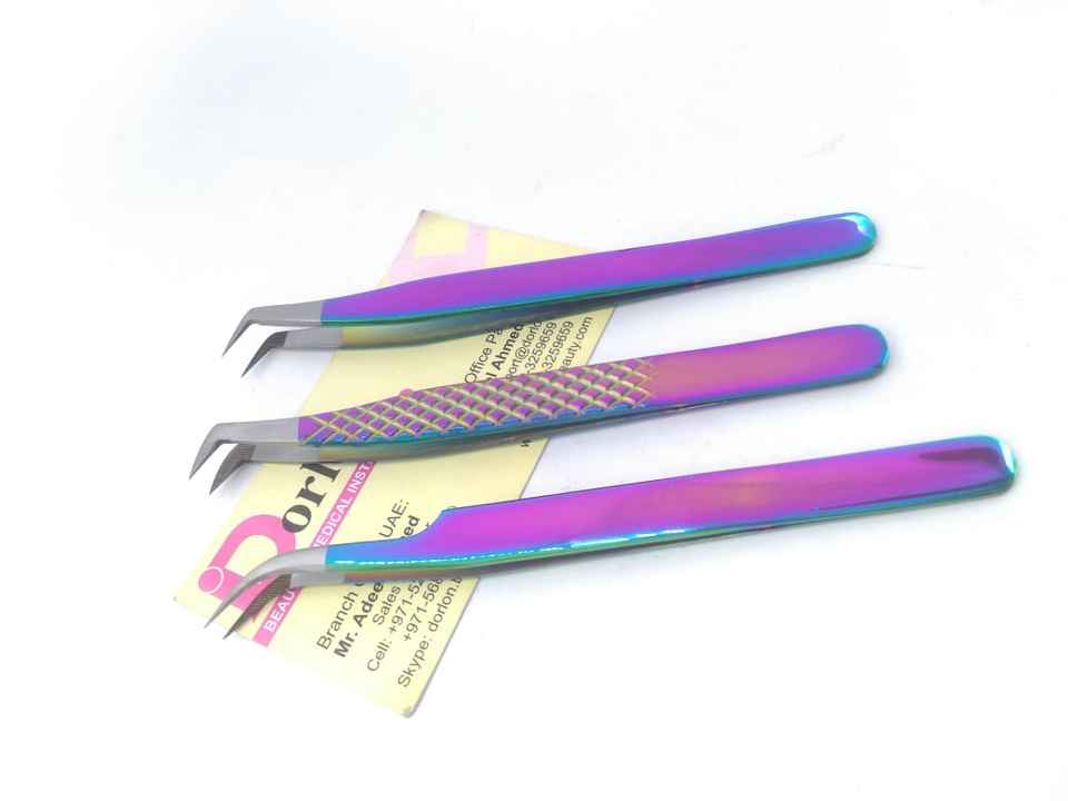 Pince à épiler d'extension de cils de couleur plasma arc-en-ciel avec pointe nano
