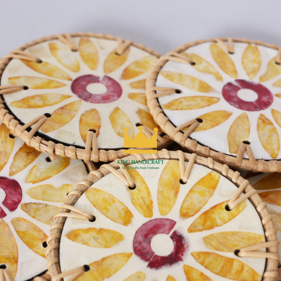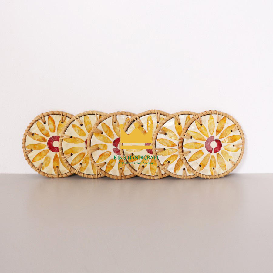 Sous-verres durables faits à la main en rotin naturel avec incrustation colorée pour thé, café et table à manger en gros du Vietnam