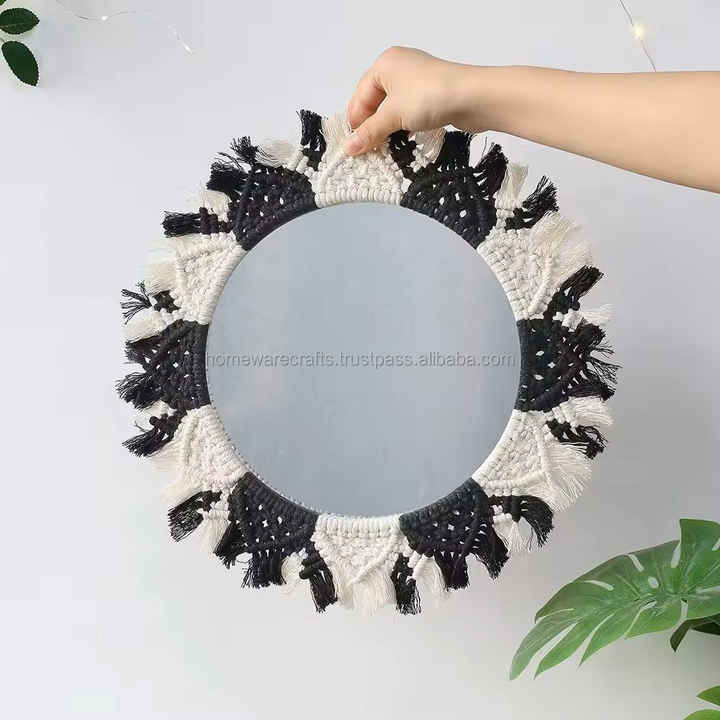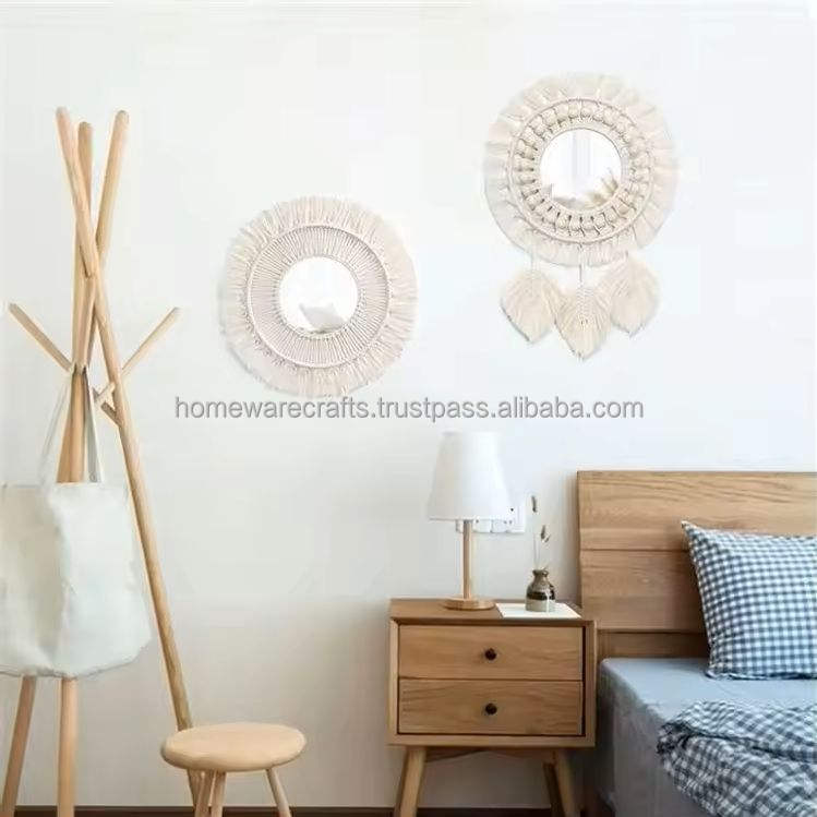 Miroir en macramé fait à la main durable miroir rond décoratif suspendu pour chambre à coucher fabricant en gros Vietnam