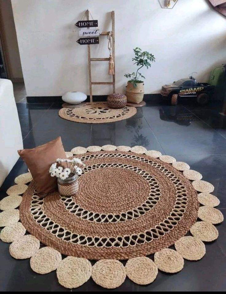 Tapis en jacinthe d'eau faits à la main et durables - Tapis rond de style bohème écologique avec support en fibres naturelles pour usage domestique et commercial