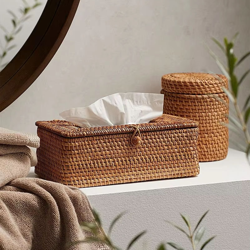 Porte-mouchoirs en rotin tissé à la main durable pour la décoration bohème de la maison et les chambres d'hôtel de luxe