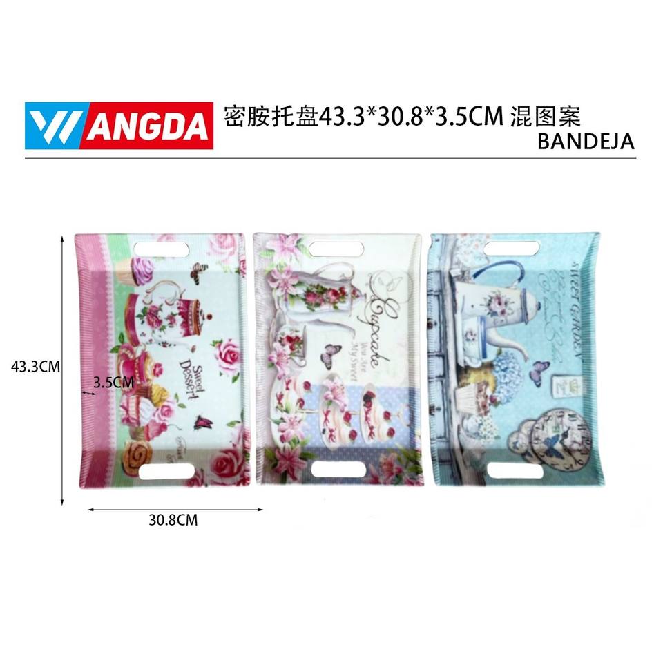 Grand plateau en mélamine durable 43.3*30.8*3.5 plateau de service en bambou en plastique écologique pour restaurant à domicile recyclable